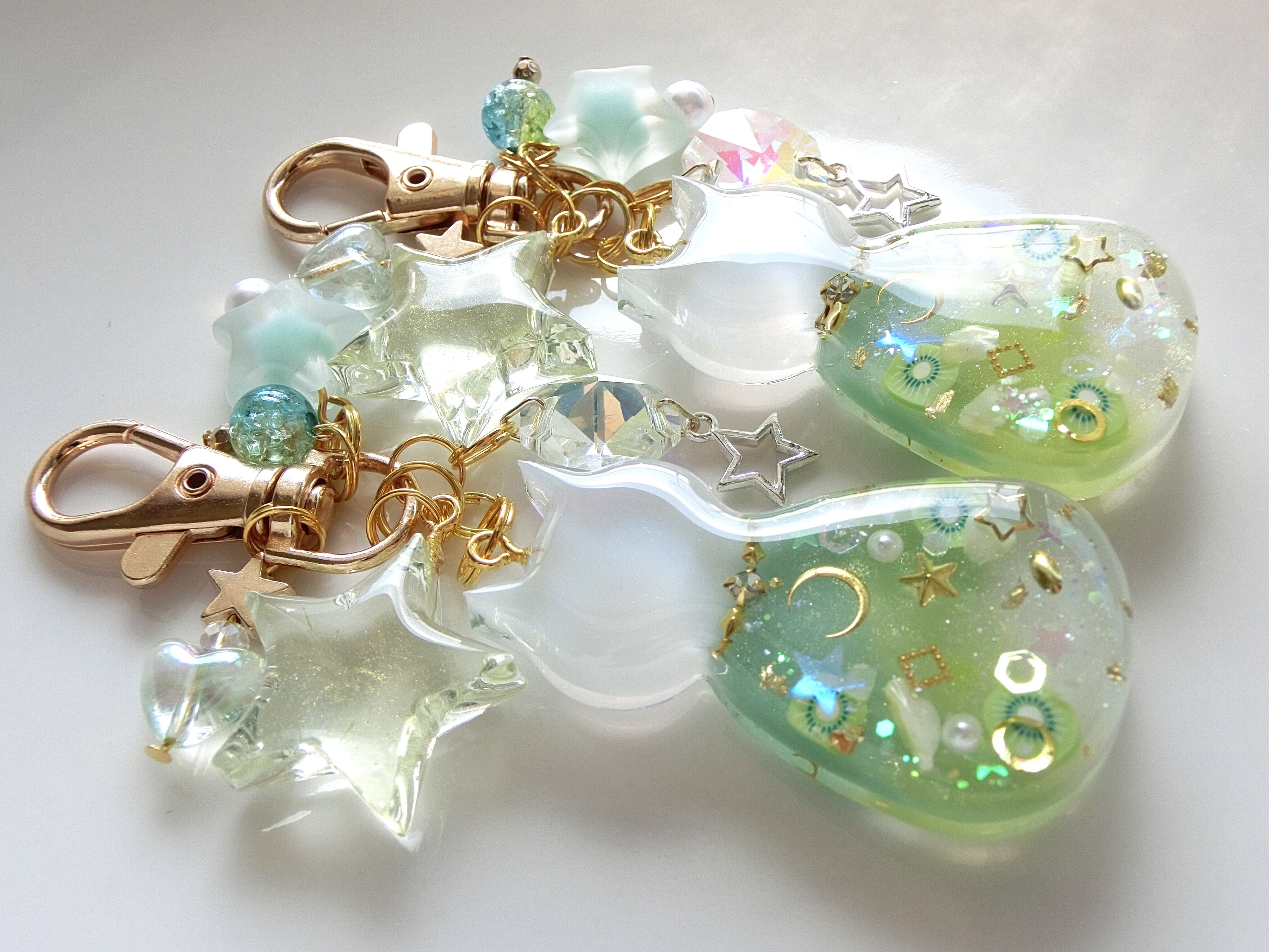 猫も星も数種類のラメやホログラムを使っていてキラキラと見えます。