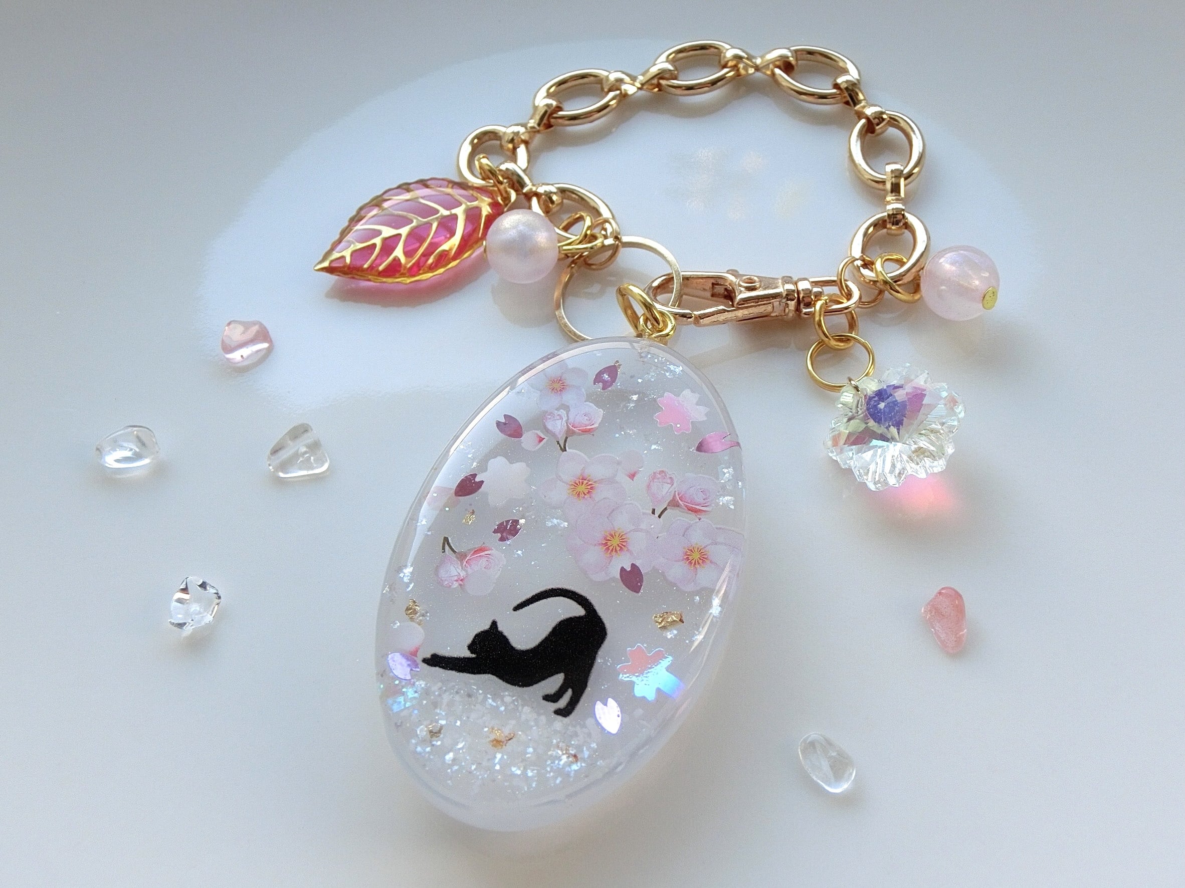 桜がちらちら舞い落ちる景色に猫さんがいます。